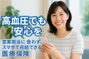 「高血圧でも入れる医療保険のヒント~営業担当に会わず申込可能!」