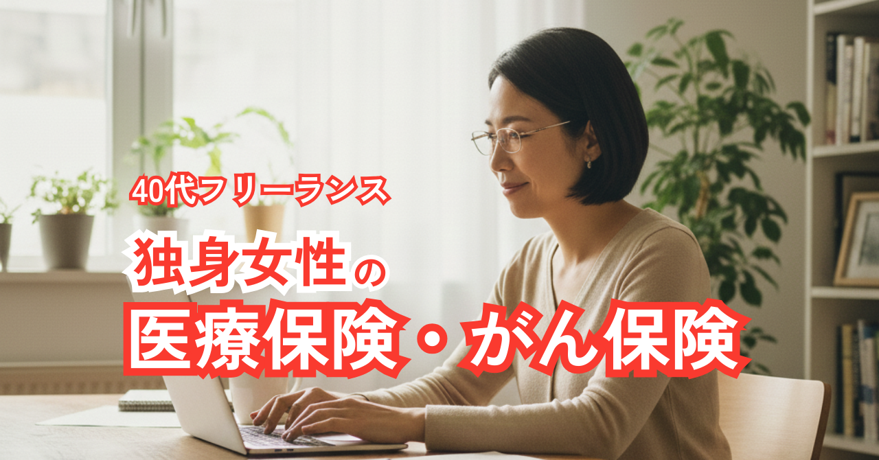 40代で医療保険・がん保険に入るメリット、フリーランス独身女性が最低限守りたいお金のライン、そして自宅からWebだけで完結させる具体的なステップをまとめていきます。