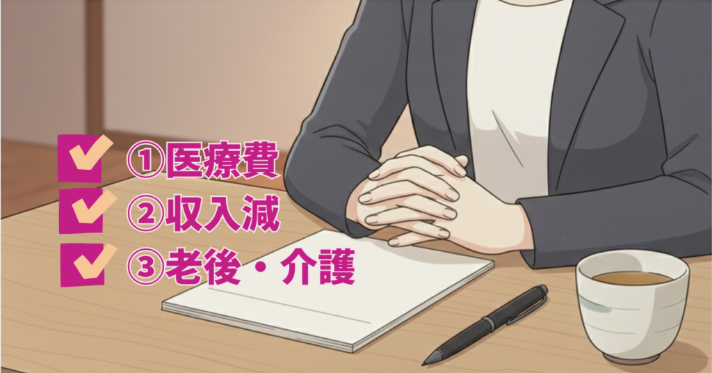 Aさんの場合、特に大きかったのは「医療費」と「老後資金」の不安でした。